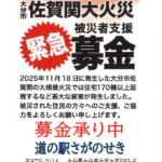 2025年11月21日 / 最終更新日時 : 2025年11月21日 saganoseki 佐賀関地区大火災について 近況 11月17日(月) 大分市佐賀関田中地区で大火災が発生しました。 現在終束に向かっております。 被災した皆様にお見舞い申し上げます。 道の駅さがのせきは火災現場から約10㎞離れており、道の駅として被害はありません。 […]